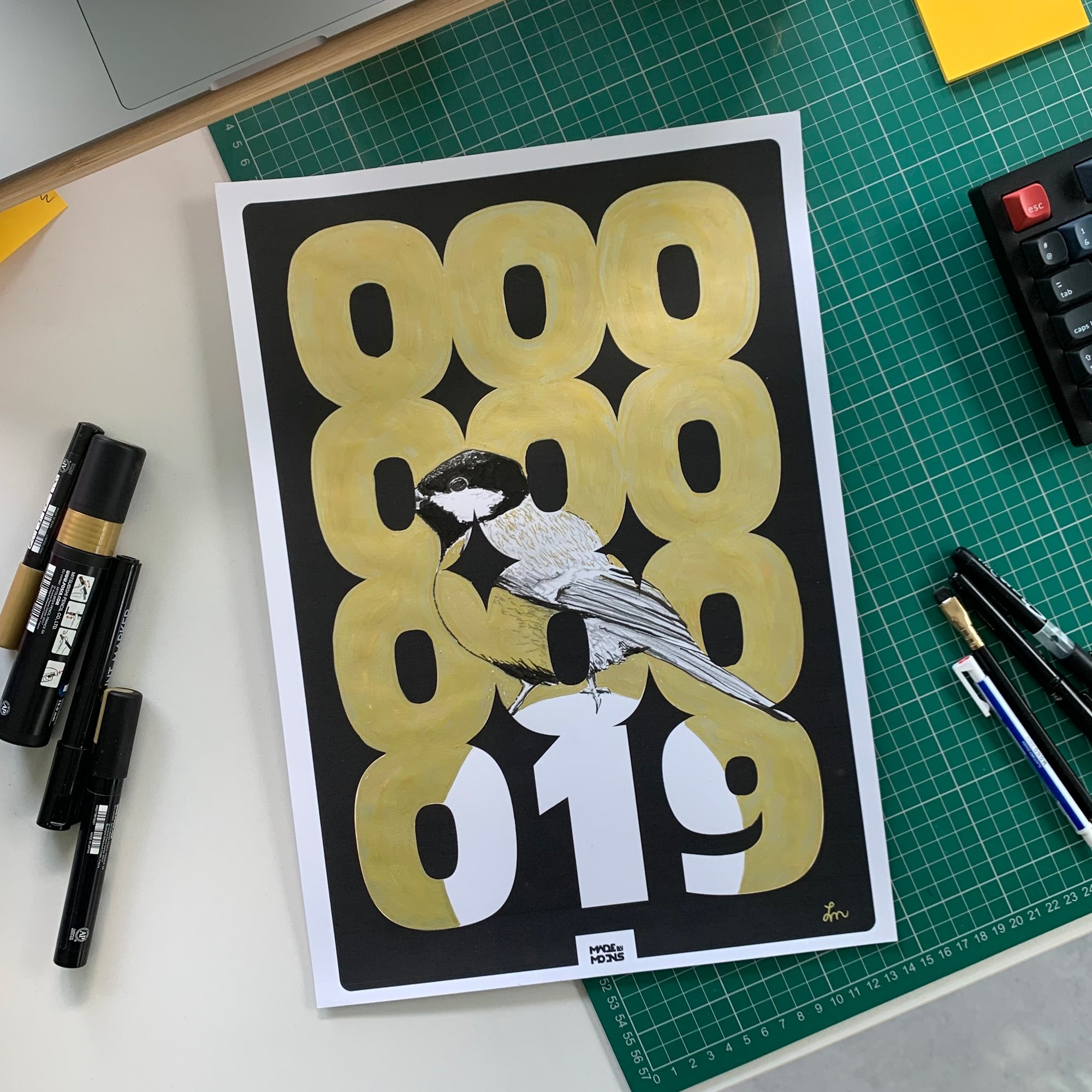 Golden embellished unique (1/1) posters, drawn and inked by hand.