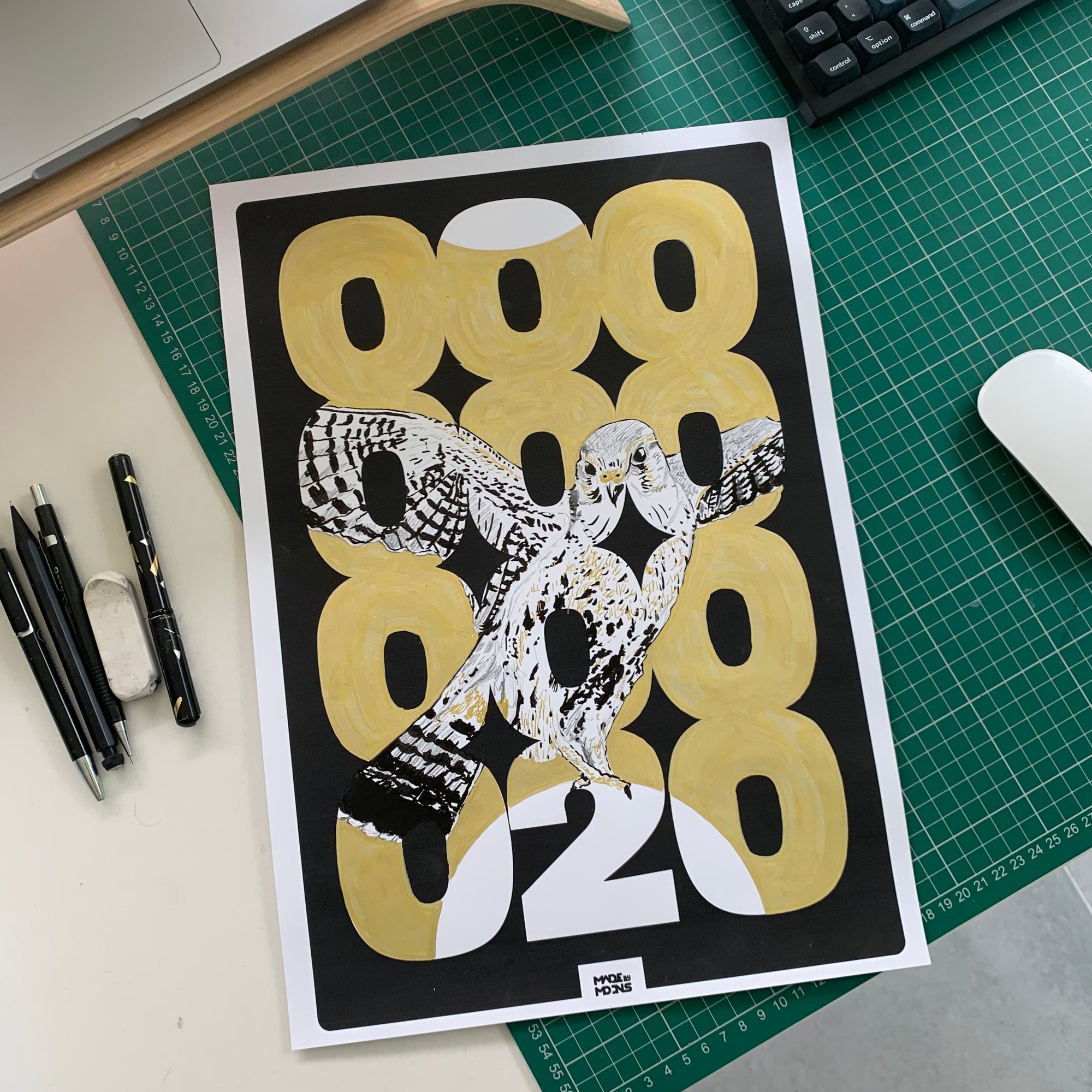 Golden embellished unique (1/1) posters, drawn and inked by hand.